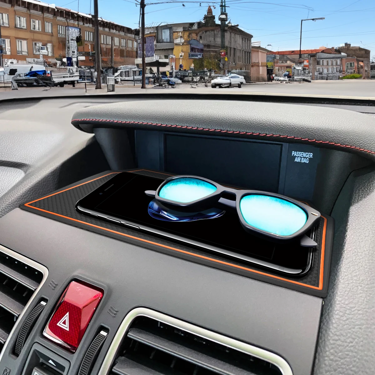·[Color] Fashionable Black outline of the Dashboard Mat Liner adds a pop of color and style to your car. It adds some minor level of protection to your dash and the Anti-slip Texture Surface creates a non-slip surface. It keeps small objects such as sunglasses, headphones, watches in dash tray quiet and prevents them from rattling around, makes use of the space above the screen.