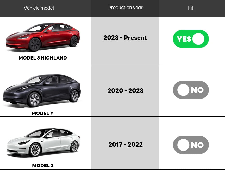Fit: Streamlined "No-Mark" profile designed to move in harmony with the Tesla Model 3 Highland (2024–2026) architecture, providing a tailored presence that is both anti-slip and odourless.